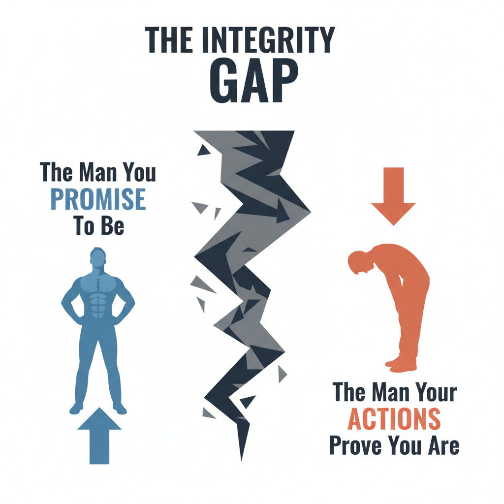 For most men, that relationship is in ruins. This creates what I call the "Integrity Gap"—the space between the man you say you want to be and the man your actions prove you are. This gap is the true source of our guilt, our frustration, and the feeling of being "stuck." The wider the gap, the lower our self-respect. We aren't just disappointed in our results; we are disappointed in ourselves.